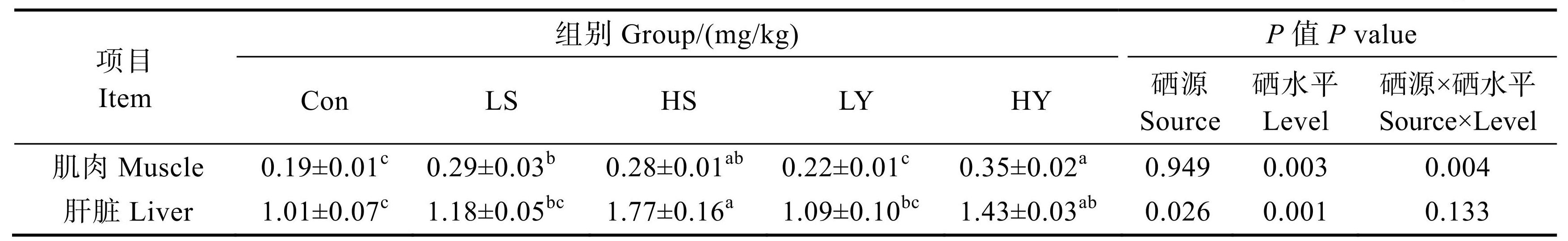 表3不同硒源和硒水平对彭泽鲫组织硒含量的影响