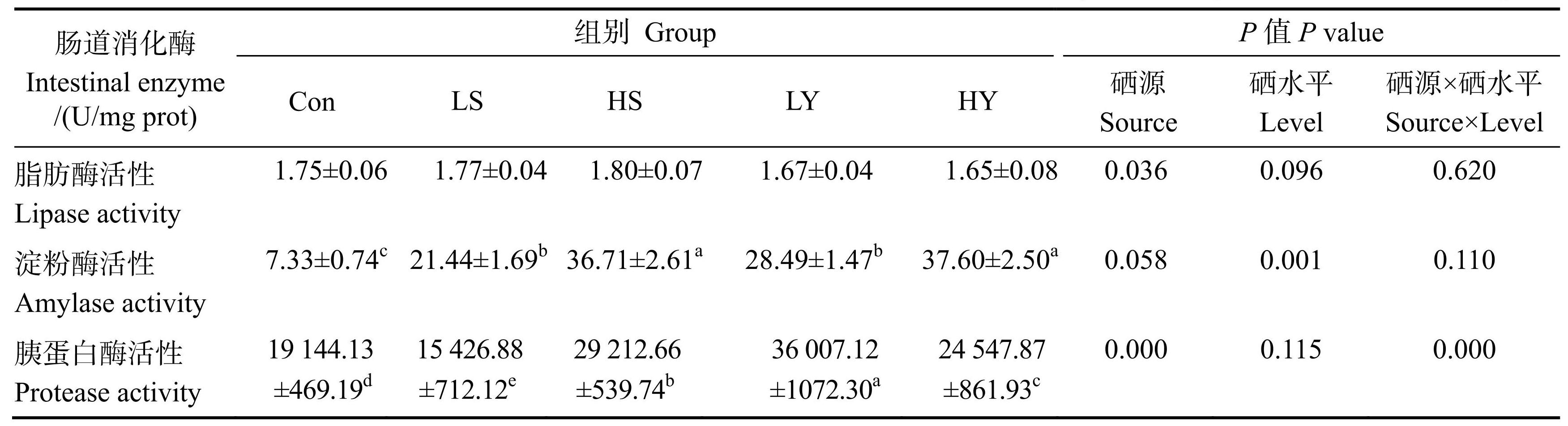 2.5 不同硒源和硒水平对彭泽鲫肠道消化酶的影响