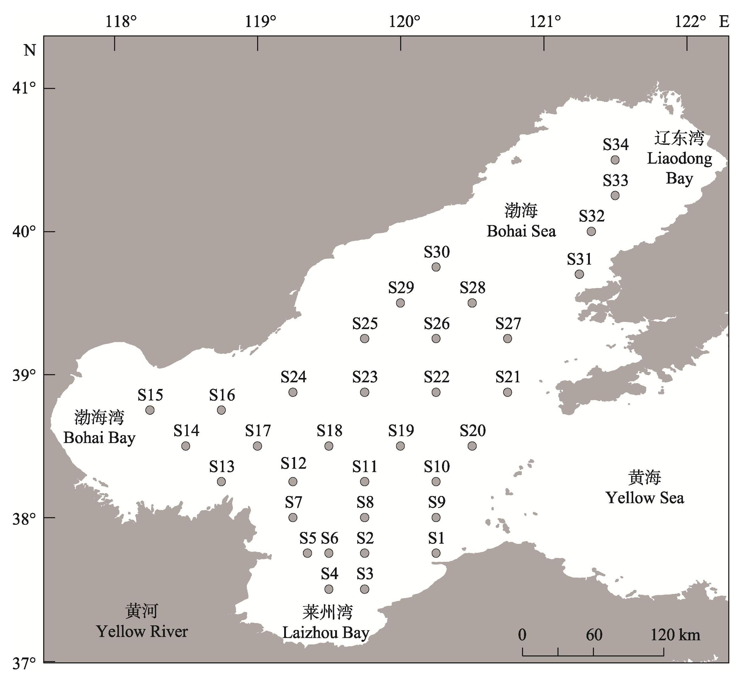Fig.1Survey stations in the Bohai Sea during summer and autumn, 2021