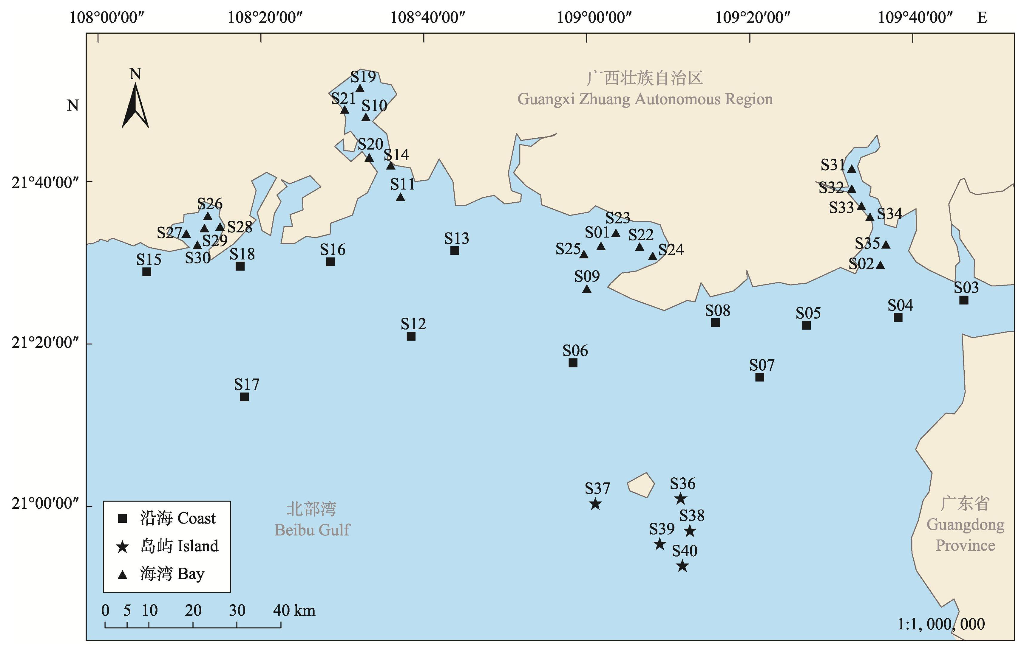 Fig.1Sampling sites for marine microorganisms in Beibu Gulf
